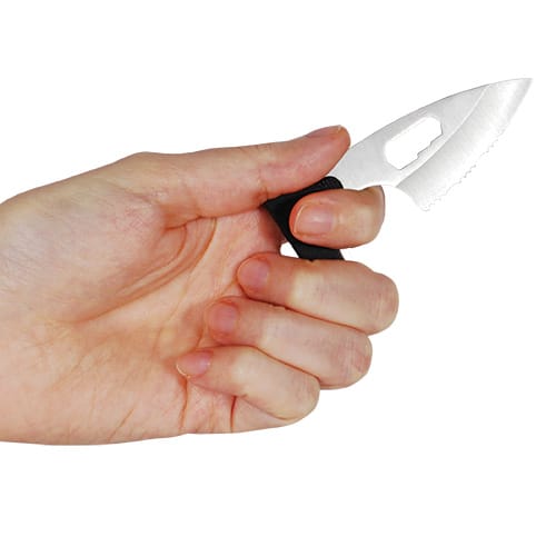 • 2-inch stainless blade that is razor sharp and serrated to cut through even the toughest materials with ease